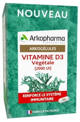 Arkopharma Arkogélules Vegetable Vitamin D3 90 Capsules is a dietary supplement based on vitamin D3 of vegetable origin, derived from a sustainable source of lichen reindeer, which contributes to the proper functioning of the immune system as well as to the maintenance of bone capital and muscle function.