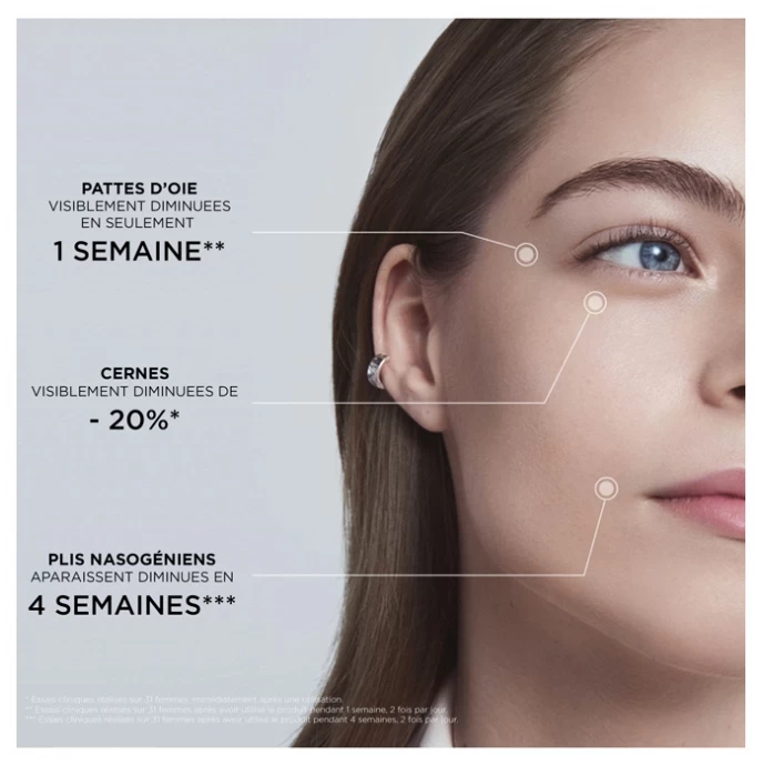 The eye contour is illuminated and firmed: fine lines and wrinkles are reduced, the skin is firmer and appears more lifted, dark circles are reduced. The contour of the lips is younger and smoother.