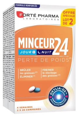 Forté Pharma Slimness 24 Day and Night 2 x 28 Tablets is a food supplement in form of two tablets types: day and night.