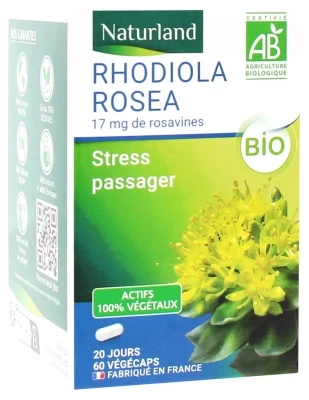 Naturland Rhodiola Rosea Organic 60 Vegecaps is a dietary supplement based on Rhodiola rosea that promotes relaxation.