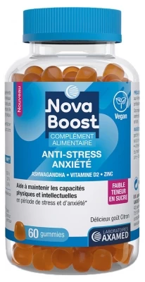 Nova Boost Anti-Stress Anti-Anxiety 60 Gummies is a dietary supplement with low sugar content based on plants, vitamins and minerals, specially designed to help maintain physical and intellectual abilities in times of stress and anxiety. It contributes to relaxation, emotional balance and mental and physical well-being.