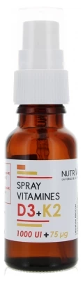 Nutrivie Vitamins D3 + K2 Spray 15ml is a food supplement based on vitamins D3 and K2, essential to the good functioning of the body as they act in synergy to protect and maintain healthy skeleton.