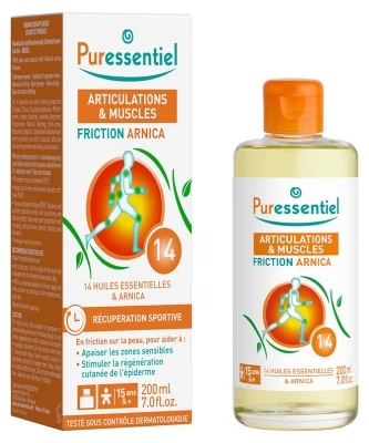 Puressentiel Muscles & Joints Arnica Rub with 14 Essential Oils 200ml with relaxing properties (cajeput, clove, globular eucalyptus, wintergreen, juniper, katafray, lavender, marjoram, peppermint, niaouli, nutmeg, scots pine, camphor rosemary, turpentine) combined with arnica to provide a natural and effective solution and thus provide well-being and relaxation.