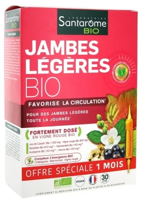 Santarome Light Legs 30 Organic Phials Special Offer is a food supplement based on 6 plant active ingredients and 3 buds: