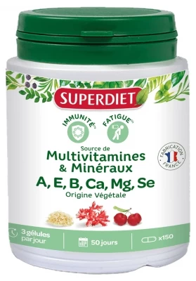 Superdiet Multivitamins Minerals 150 Capsules is a food supplement in form of capsule based on 11 vitamins and minerals.