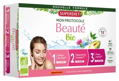 Superdiet Organic Beauty Protocol 30 Phials is a food supplement divided in 3 successive phases of 10 days.