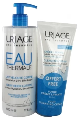 Uriage Silky Body Lotion 500ml + Cleansing Cream 200ml Free is a duo of cares based on Uriage Thermal water, for dry and sensitive skins.