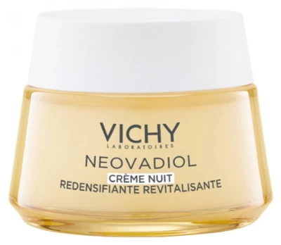 Vichy Neovadiol Peri-Menopause Revitalizing Redensifying Night Cream 50ml is a night care designed to act on skin aging, loss of density, sagging and the effects of hot flashes related to the menopause period.